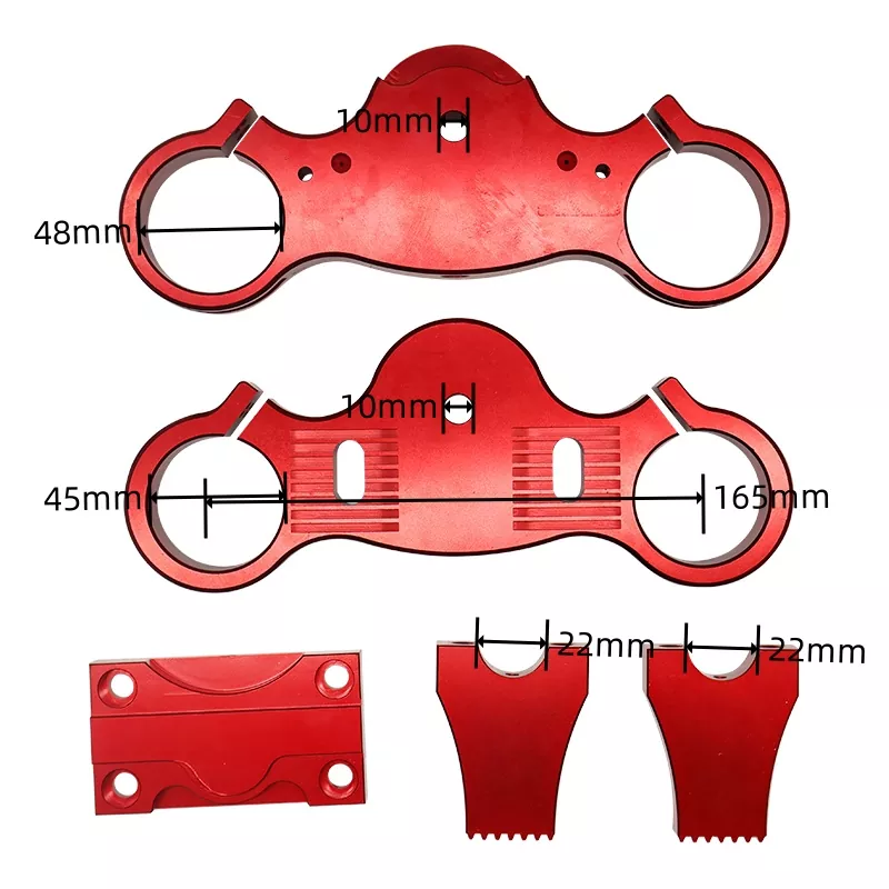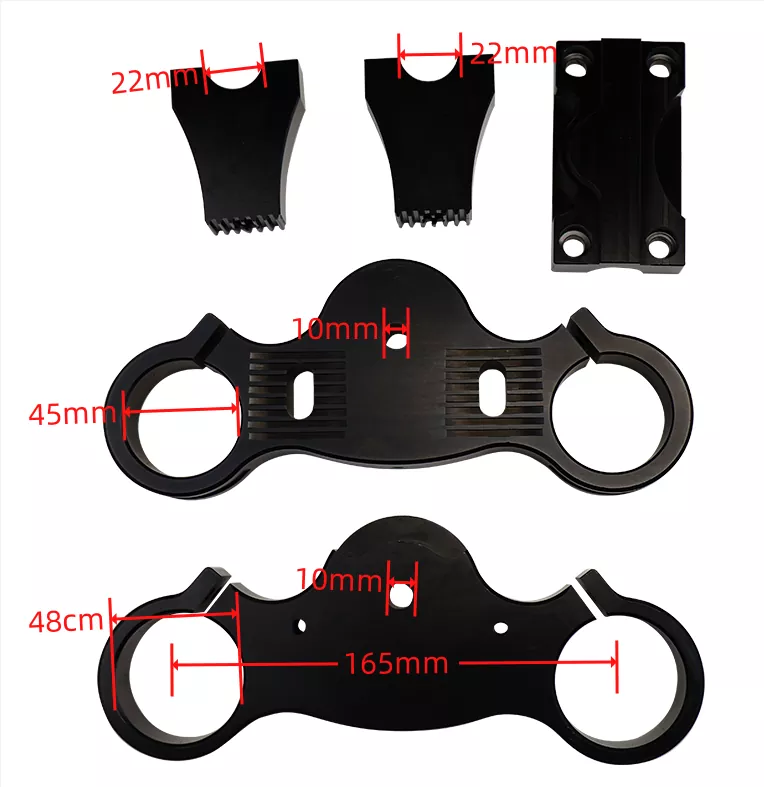 Sukurtas tam, kad būtų atsparus, Heavy Duty CNC trigubas spaustukas pasižymi išskirtiniu tvirtumu, kad būtų galima įveikti sudėtingas važiavimo sąlygas. Šis didelės galios CNC trigubas gnybtas užtikrina patikimą stabilumą, leidžiantį mėgautis važiavimu nedvejodami. Be to, jis gali pritaikyti vidutinės skylės skersmenį, pvz., 10 mm, 12 mm 15 mm ir pan., galite pritaikyti jį taip, kad jis puikiai atitiktų savo poreikius. Be to, pridedame visus reikalingus varžtus, kad montavimas būtų be vargo. Patirkite važiavimą be rūpesčių su sunkiųjų CNC trigubu spaustuku, sukurtu kaip tik jums! motociklas.