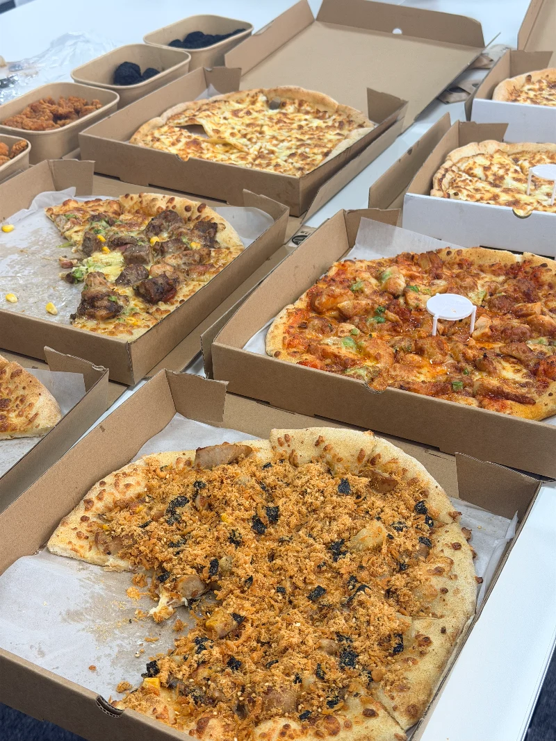 Dėžutės picų užpildė stalus, o biuras akimirksniu apgaubtas gardžiais aromatais. Nuovargis dingo akimirksniu. Kolegos žvilgtelėjo pro monitorių, akys šviečia. Kažkas sušuko: "Pica čia!" ir kaip tik aplinkui susirinko visa komanda.